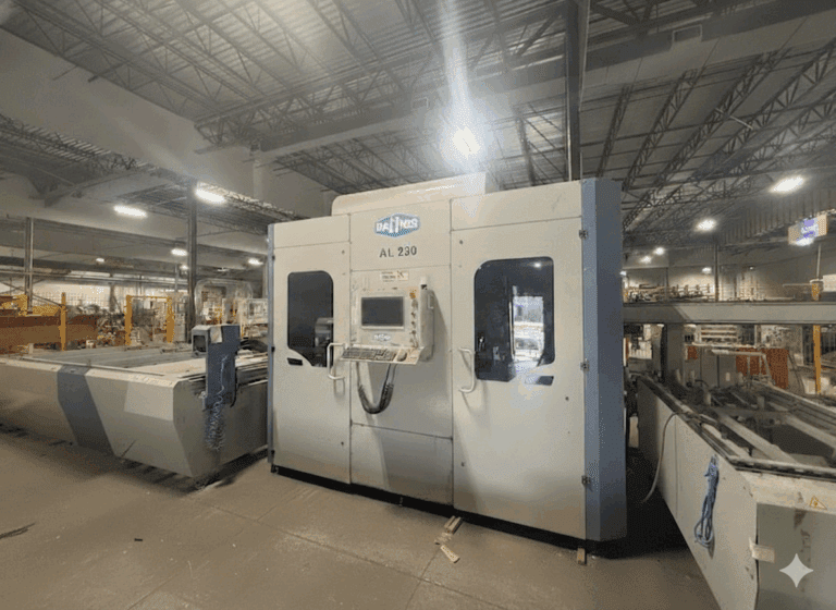 2022 Haffner Model AL-230-8 Profile Processing Center with Material Infeed (26.24 ft./8.0 m) & & Outfeed System (14.76 ft./4.5 m), with Vertical Saw Blade (23.62 in./600 mm) and Horizontal Saw Blade (15.75 in./400m)